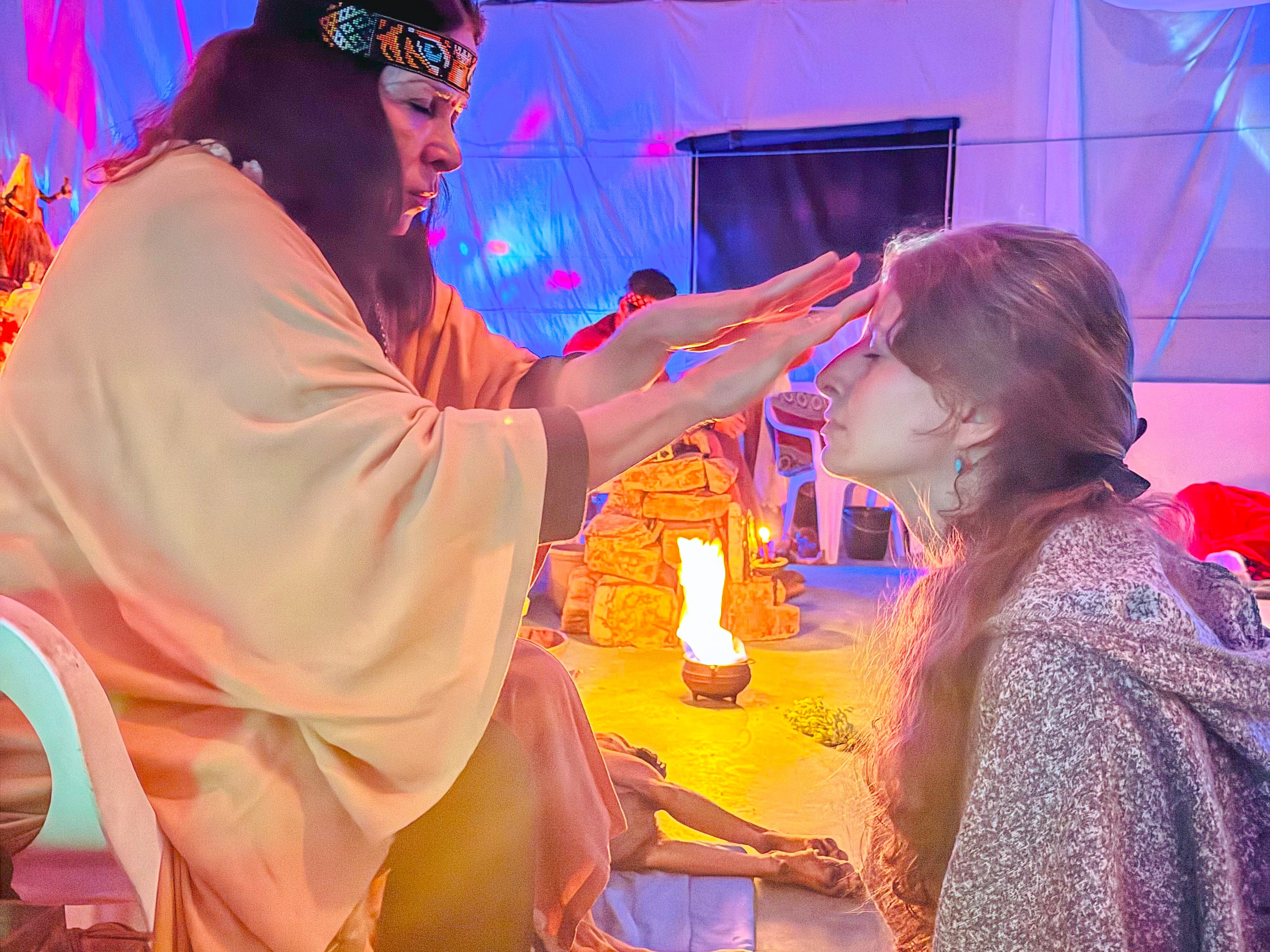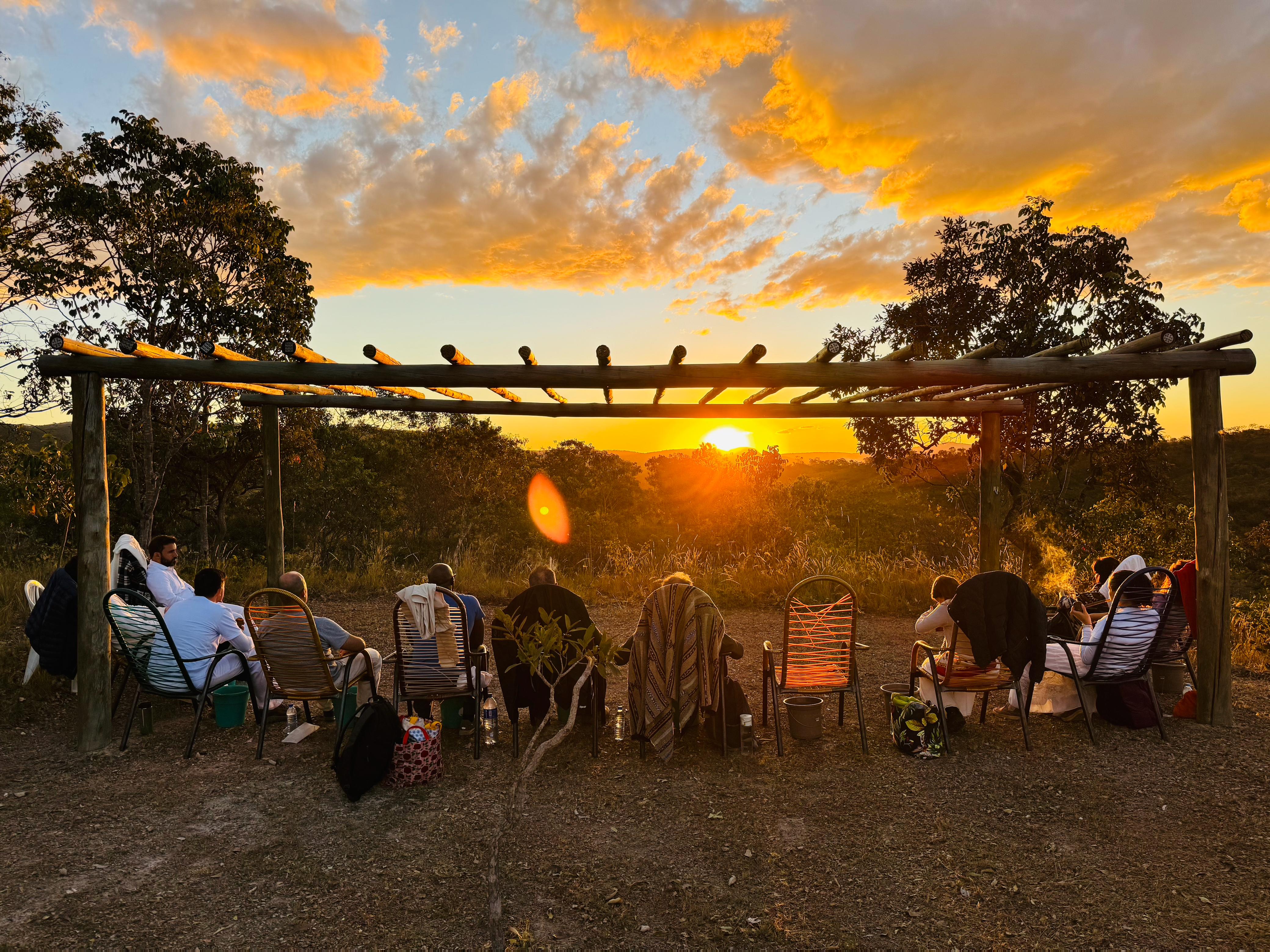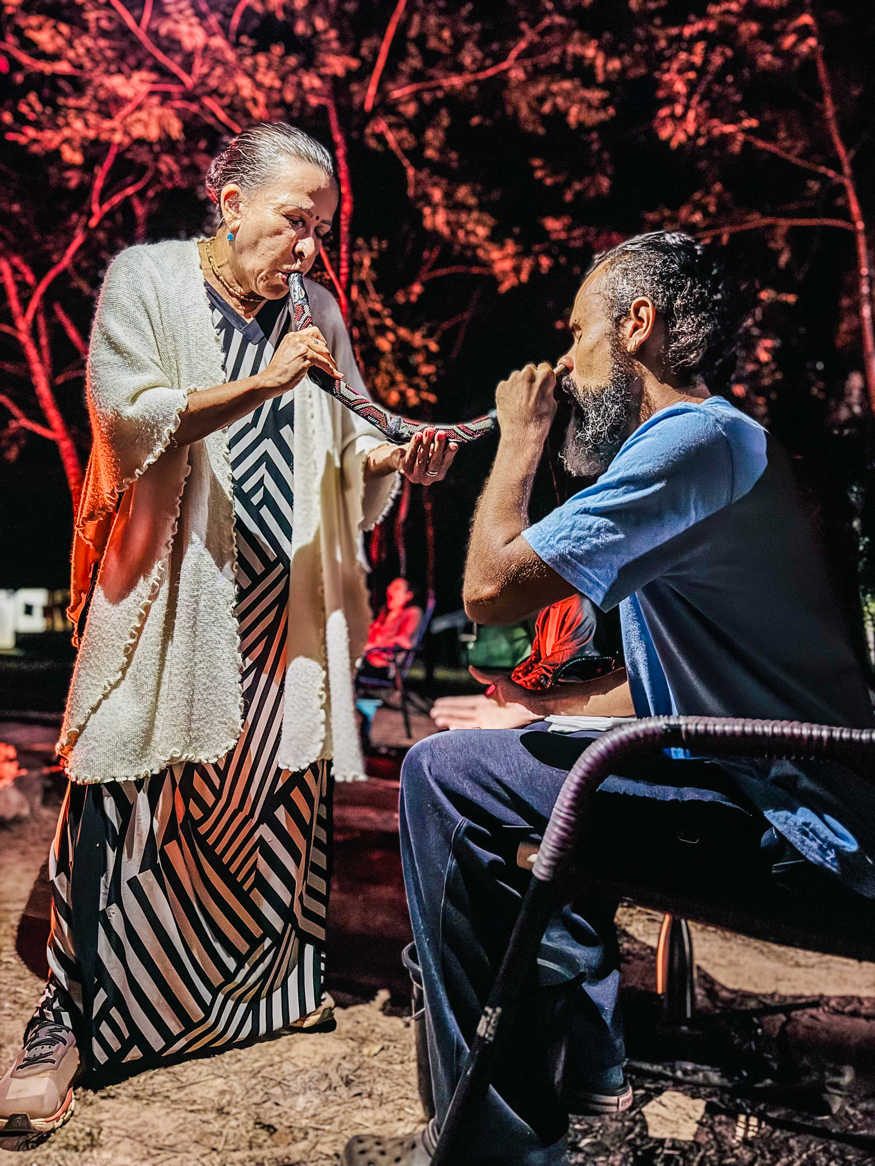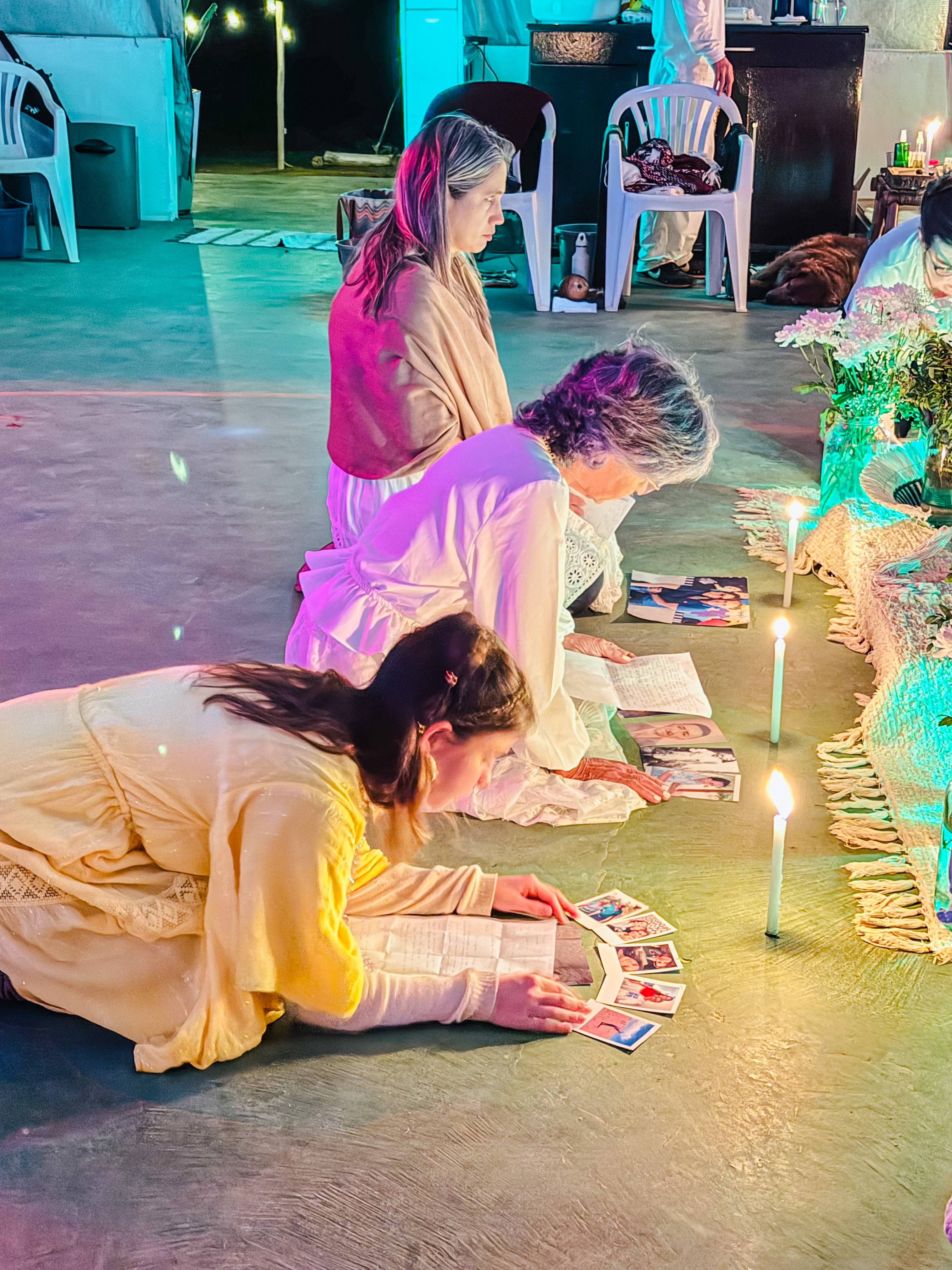 Cerimônia de Fogo Sagrado + Ayahuasca (opcional) + Rapé. Entrega simbólica de medos e culpas aos antepassados, transformando o "fardo" em "força".