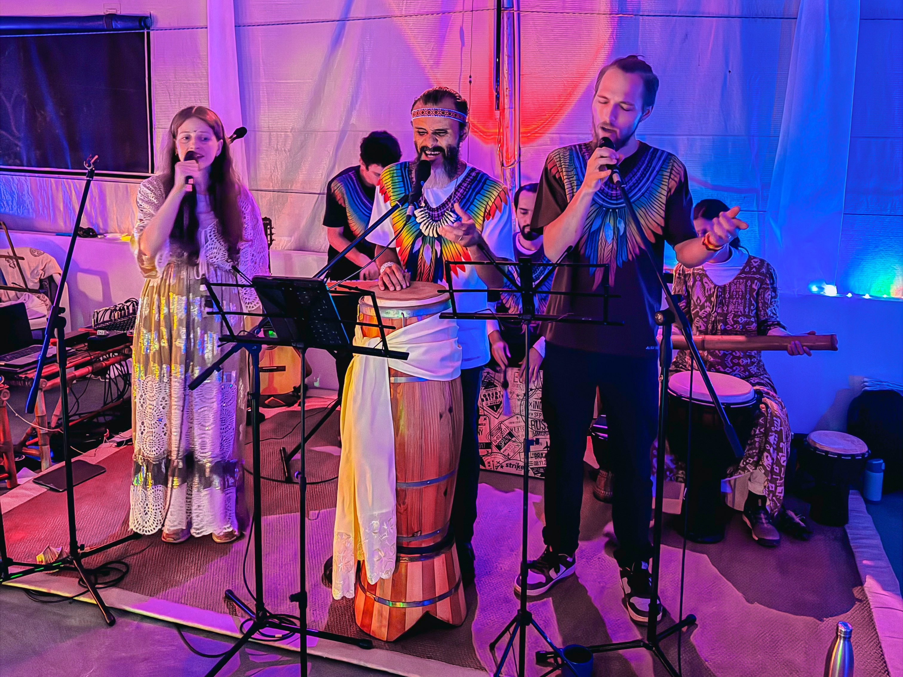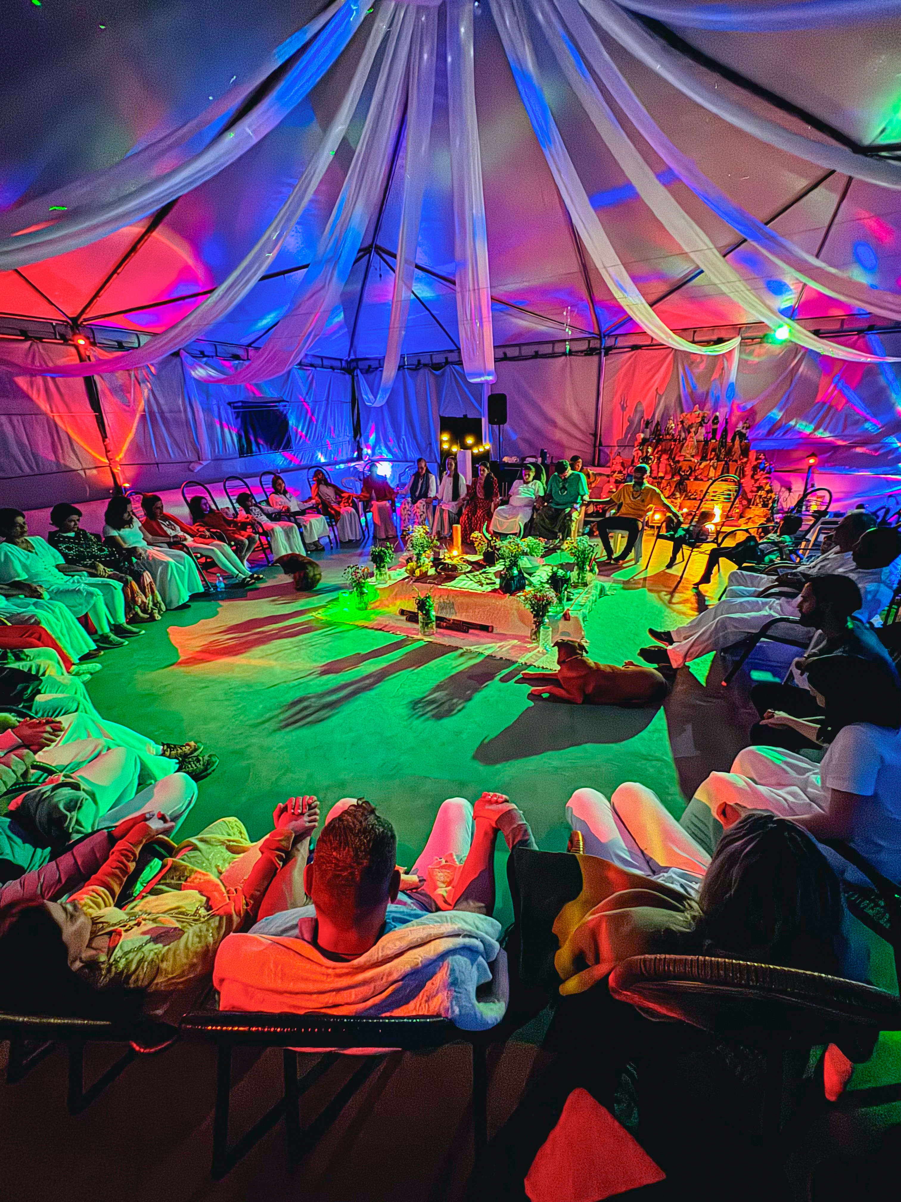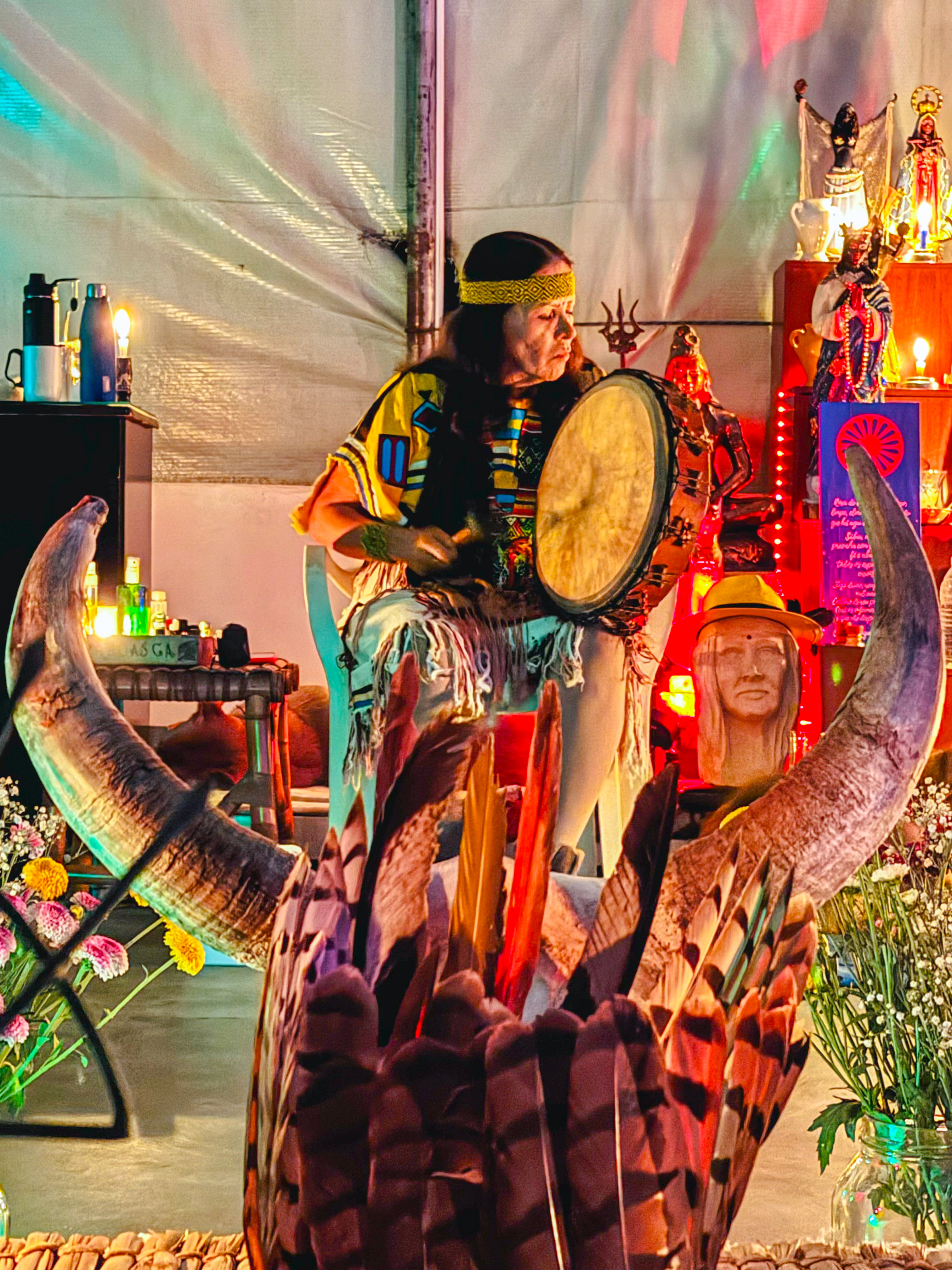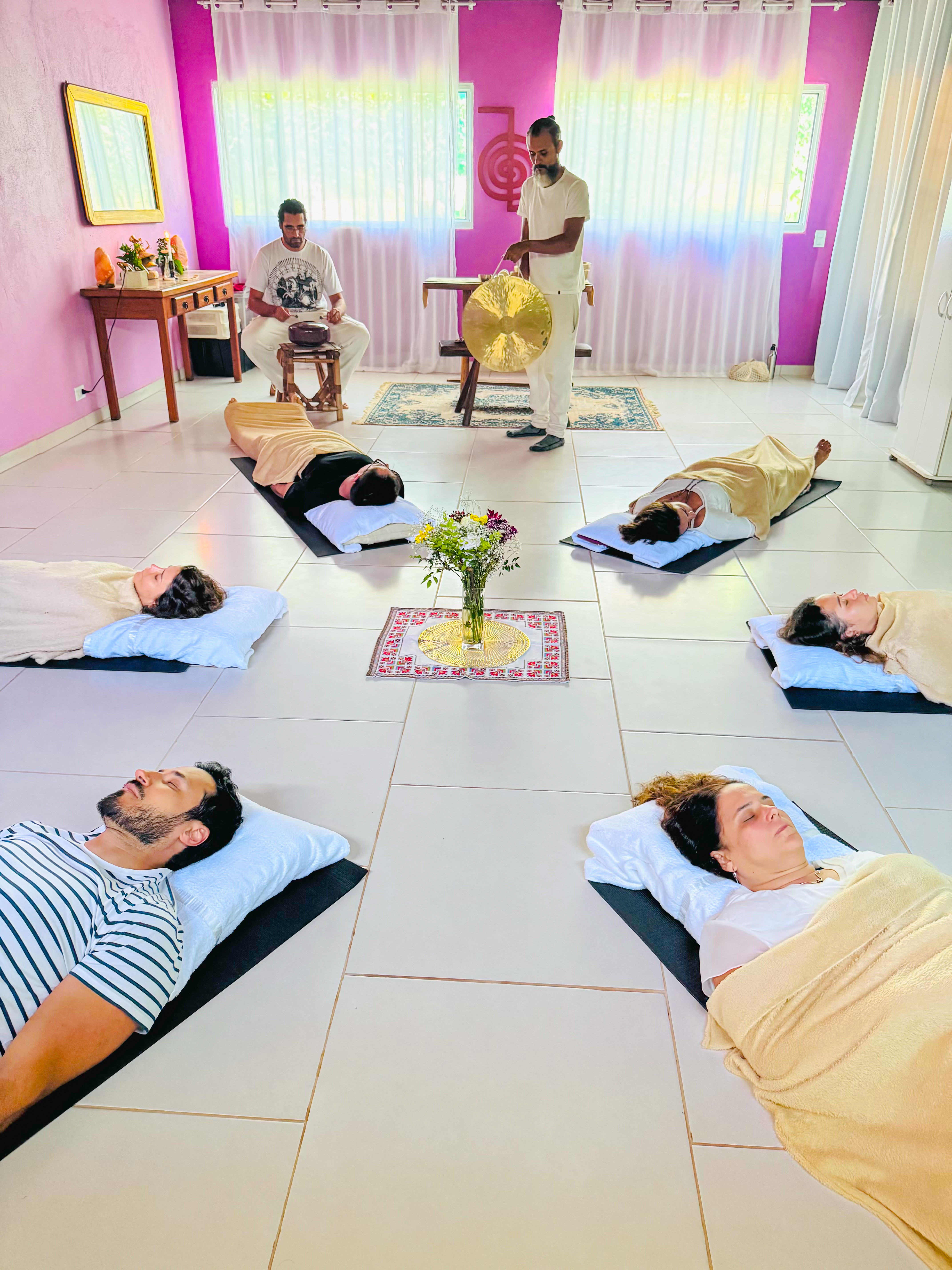 Cerimônia de Fogo Sagrado + Ayahuasca (opcional) + Rapé. Entrega simbólica de medos e culpas aos antepassados, transformando o "fardo" em "força".